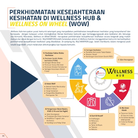 dan komuniti. Manakala, Wellness on Wheel (WoW) merupakan perkhidmatan kesejahteraan kesihatan secara bergerak yang mudah