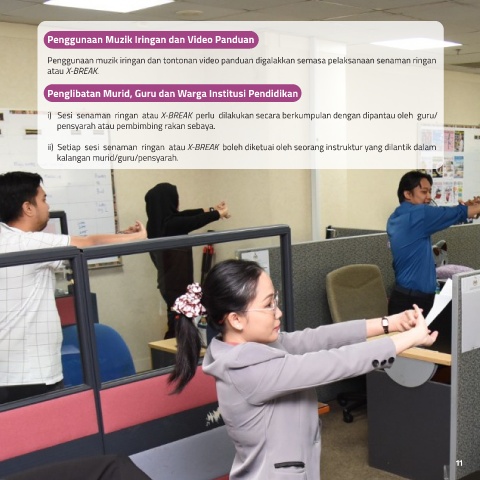 ii) Setiap sesi senaman ringan atau X-BREAK boleh diketuai oleh seorang instruktur yang dilantik dalam
